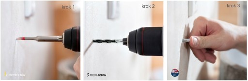 - pierścień w kolorze czerwonym wskazuje idealną głębokość wiercenia
