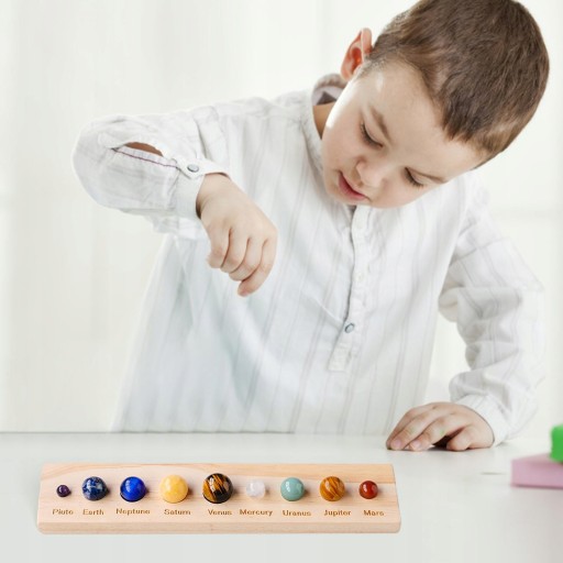 Солнечная система с деревянными фигурками из 9 планет.