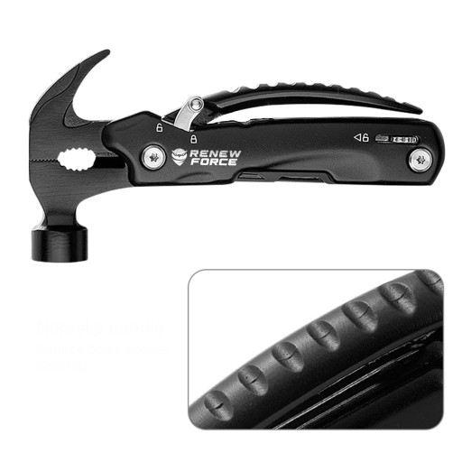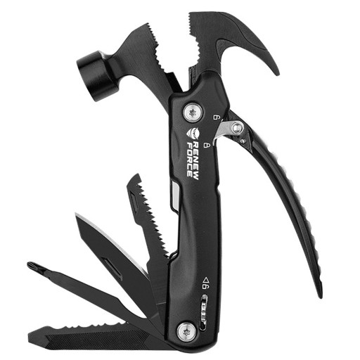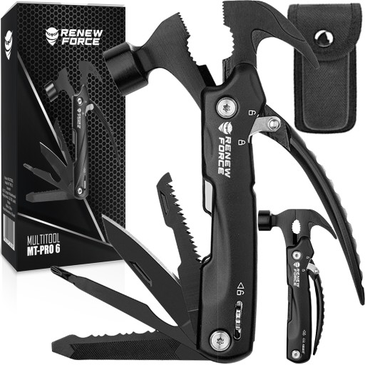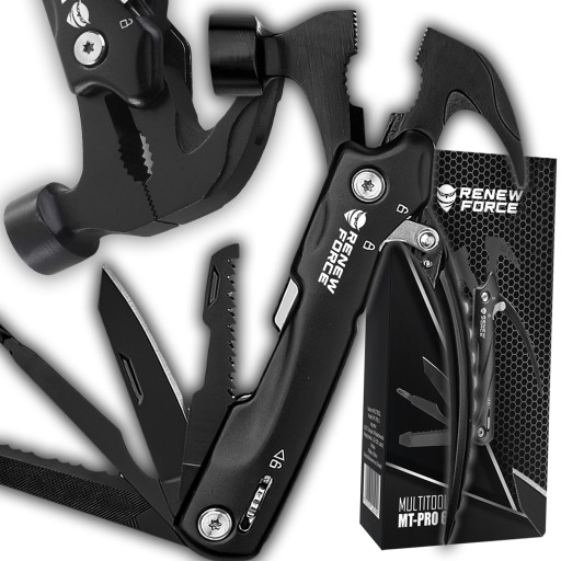 Ten multitool to uniwersalne narzędzie, kompaktowy młotek, zawierające 14 różnych funkcji w jednym miejscu. W tym wypadku jest to kombinacja: