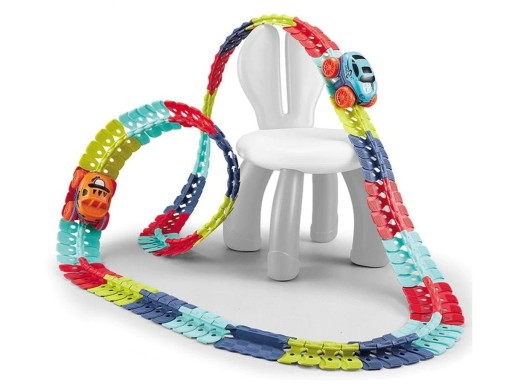 Małe rączki nie będą miały problemu z łączeniem, rozłączaniem i układaniem tych innowacyjnych, serpentynowych elementów toru. Złączone elementy można dowolnie skręcać i wywijać co pozwala na ułożenie nieskończonej ilości konfiguracji.
