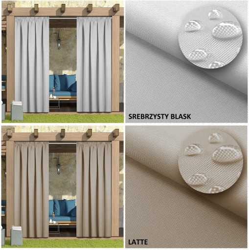 Wodoodporność i ochrona przed słońcem: Nasze zasłony zewnętrzne ze specjalną obróbką materiału są odporne na wodę. Te wodoodporne zasłony są trwałe nawet podczas deszczu, wiatru lub światła słonecznego. Zasłony są doskonałej jakości a tkanina użyta przy produkcji blokuje większość światła słonecznego i promieni UV. Zapobiega zamoczeniu w deszczowe dni lub poparzeniom w słoneczne dni. Im ciemniejszy kolor, tym lepszy efekt cieniowania