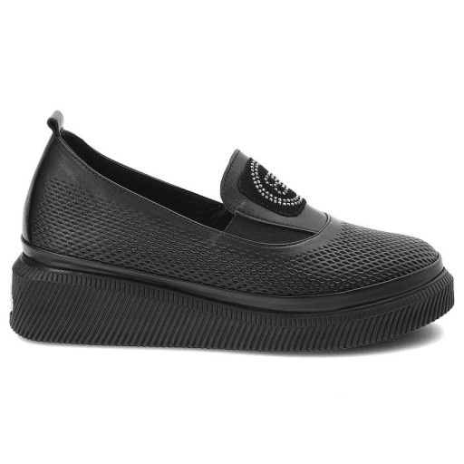 Czarne Półbuty Ravini Wygodne Skórzane Buty Damskie