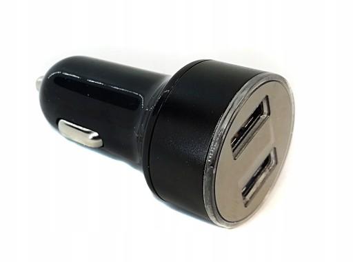 Ładowarka samochodowa z podwójnym portem USB do szybkiego ładowania urządzeń.