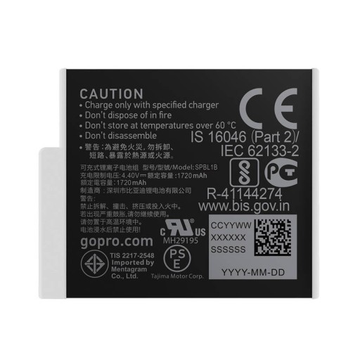 Zaawansowana bateria litowo-jonowa 1720 mAh zwiększa wydajność kamery w porównaniu ze standardowymi bateriami GoPro w szerokim zakresie temperatur.