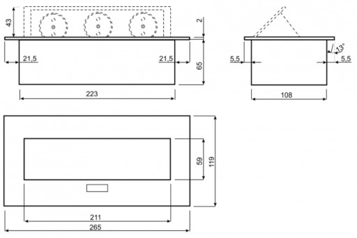 - wymiary otworu montażowego: 223 x 108 x 65 mm (szer./wys./gł.)