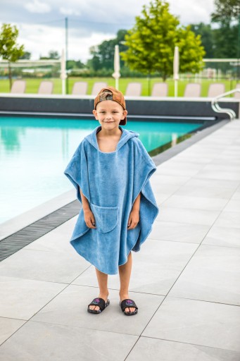 Ponczo kąpielowe wykonane z niezwykle chłonnej przędzy bambusowo-bawełnianej dobrze wchłania wodę i osusza po każdej kąpieli. Luźny krój ponczo sprawia, że dziecko będzie czuło się komfortowo i chętnie będzie zakładać je przez głowę. Ponczo z kapturem i kieszonką nadaje się zarówno na basen, jak i na plażę. Idealnie zastępuje ręcznik, gdyż nie krępuje ruchów, ochrania przed promieniami słonecznymi i otula przy wietrznej pogodzie.Ponczo kąpielowe jest bardzo lekkie i bez problemu zapakujesz je do walizki. Tak praktyczny oryginalny produkt możesz też dać w prezencie na różne okazje. Idealnie sprawdzi się jako prezent na baby shower, pierwsze urodziny i nie tylko.Linia naszych produktów tworzona jest w taki sposób, aby do siebie pasowały i wzajemnie się uzupełniały. Cała rodzina może skompletować jednolite zestawy o różnych wzorach i kolorach, które będą pięknie prezentowały się zarówno w domu, jak i na wakacjach. Do ponczo kąpielowego możesz dokupić ręcznik z kapturem, ręcznik do rąk i szlafrok.