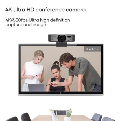 ALIO 4k110 - Kamera śledząca USB 3.0, 4k do spotkań grupowych w salach konferencyjnych, huddle room. Pole widzenia kamery 110 stopni, zoom cyfrowy x 8. Automatyczny balans bieli, świetna ostrość, wbudowane mikrofony z funkcją kształtowania wiązki o zasięgu do 6 metrów. Funkcja automatycznego śledzenia i kadrowania uczestników na podstawie rozpoznawania twarzy. W zestawie pilot na podczerwień do sterowania kamerą, kabel USB 3.0 ( USB-C / USB-A ) oraz zaślepka na obiektyw.