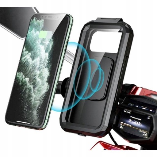 Uniwersalny wodoodporny uchwyt motocyklowy na smartfon mocowany do kierownicy z ładowarką indukcyjną złącze USB Typ-C