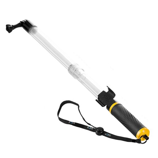 Kijek ma regulowaną długość dzięki czemu pozwala robić ujęcia selfie. Rączka uchwytu ma antypoślizgową fakturę i wykończona jest kontrastowym, żółtym kolorem dzięki czemu jest widoczna na wodzie.
