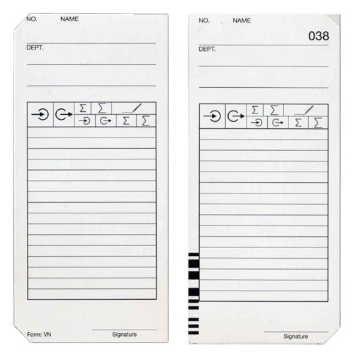 Przedmiotem aukcji są papierowe, kodowane karty czasu pracy do zegarów QR395, QR475. Pakowane są w komplety po 100 szt.