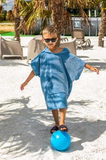Narzuta kąpielowa wykonana z miękkiej i delikatnej, a zarazem niezwykle chłonnej, tkaniny z przędzy bambusowo-bawełnianej osusza i przyjemnie otula dziecko po każdej kąpieli. Narzutę można śmiało zabrać w podróż, na basen czy plażę – zajmuje mało miejsca w walizce. Jej krój jest luźny, przypomina wygodną bluzę z kapturem i kieszonką, łatwo zakłada się przez głowę, dzięki czemu dziecko będzie czuć się komfortowo i swobodnie. Narzuta świetnie sprawdzi się jako ręcznik po kąpieli, bo dobrze wchłania wodę, ale ochroni też przed promieniami słonecznymi czy wietrzną pogodą. Narzuta kąpielowa to praktyczny i bardzo lekki produkt o wielu zastosowaniach. Z pewnością sprawdzi się jako oryginalny prezent na baby shower, pierwsze urodziny dziecka i inne okoliczności.Cała rodzina może stworzyć jednolite zestawy o wielu wzorach i kolorach, które będą świetnie prezentować się zarówno w domu, jak i w podróży. Tworzymy je w taki sposób, aby pasowały do siebie i wzajemnie się uzupełniały. Narzuta kąpielowa dobrze komponuje się z ręcznikiem z kapturem, ręcznikiem do rąk i ze szlafrokiem.Istotnym atutem naszych produktów jest to, że są wykonywane z najwyższą precyzją i szyte są w Polsce.