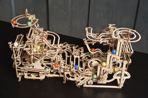 Masz szansę na samodzielne stworzenie mechanicznego toru kulkowego! Ten model 3D zbudujesz od podstaw z drewnianych, misternie wykonanych elementów. Obserwuj pracę niesmowitego toru, który wręcz hipnotyzuje. Przestrzenne układanki do doskonały pomysł na prezent dla osób w każdym wieku.
