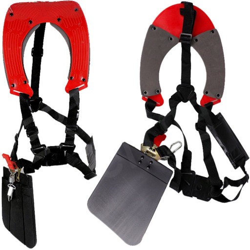 Dwuramienne szelki nośne do kosy spalinowej Dwuramienne szelki / pas nośny do podkaszarek i kos spalinowych. Solidne wykonanie oraz zastosowanie miękkich piankowych podkładów na wysokości ramion zapewnia pełen komfort i wygodę nawet podczas długotrwałej pracy. Cechy produktu: wysokiej jakości wykonanie 4 suwaki regulujące długość pasów osłona na udo wykonana z tworzywa sztucznego metalowy zaczep kosy spalinowe