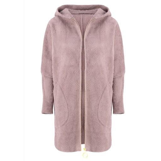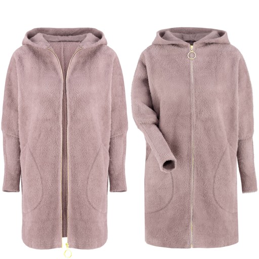 Puszysty i wysokogatunkowy płaszcz ALPAKA Z WEŁNĄ, bardzo delikatny i miękki w dotyku. Płaszczyk z kapturem o oversizowym kroju idealnie dopasowuje się do sylwetki.