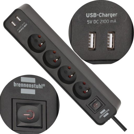 Zakres dostawy: 1 x listwa zasilająca Ecolor z funkcją ładowania przez USB oraz 1,5 m kabel w kolorze białym/czarnym - w najlepszej jakości brennenstuhl