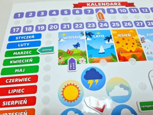 ✔ edukacyjny - uczy dziecko systematyczności poprzez codzienne interakcje m.in. zmianę dnia tygodnia, obserwację pogody i zmian temperatury