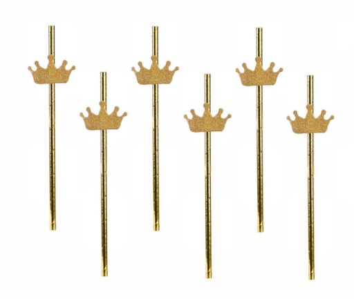 Słomki Rurki papierowe złote z koroną eko eco 6szt
