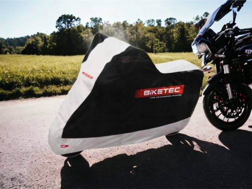 2. Wysokiej jakości pokrowiec z materiału Aquatec, dedykowany do użytku zarówno na zewnątrz, jak i wewnątrz budynków. idealny sojusznik w pielęgnowaniu Twojego Motocykla niezależnie od miejsca przechowywania