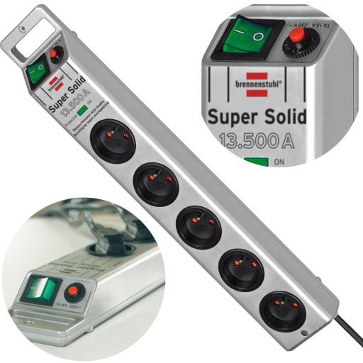 Zakres dostawy: 1 x listwa antyprzepięciowa Super-Solid z ochroną odgromową w kolorze srebrnym - w najlepszej jakości firmy brennenstuhl®