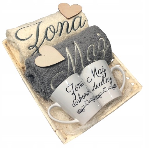 ❤️ Zestaw ręczników i kubków ŻONA / MĄŻ w koszu ❤️