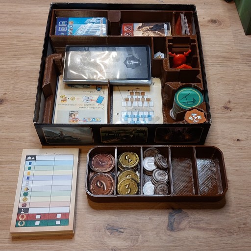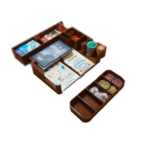 Organizer pomieści wszystkie elementy znajdujące się w podstawowej wersji gry oraz dodatki. Nie wymaga klejenia, wszystko gotowe do włożenia do pudełka.