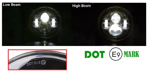 Wkład led do montażu w okrągłych lampach 7 cali - lampa z homologacją wybitą na szkle lampy - DOT SAE (amerykańską) i E9 (europejską)