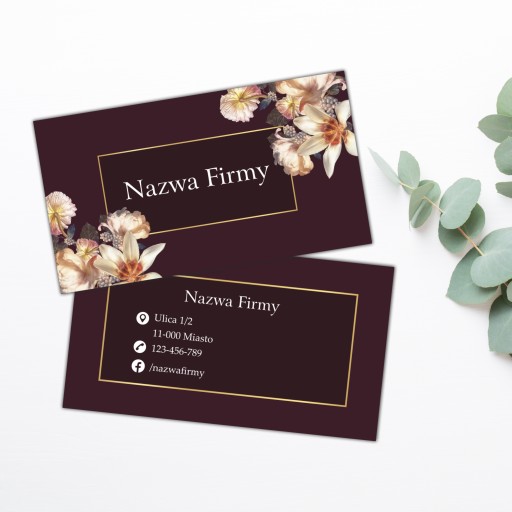 Eleganckie wizytówki z motywem kwiatowym.