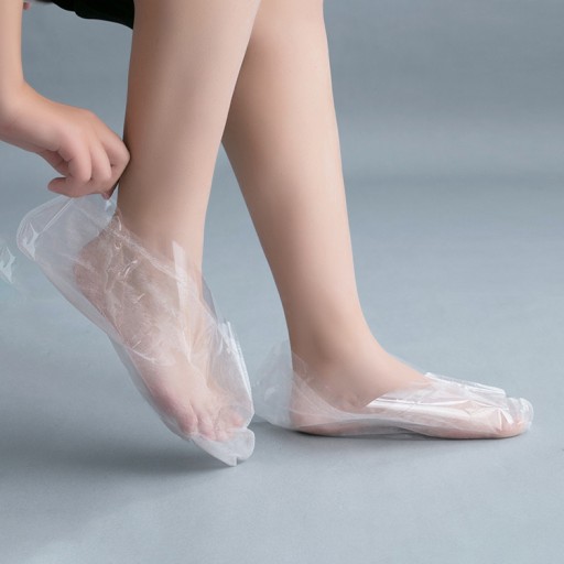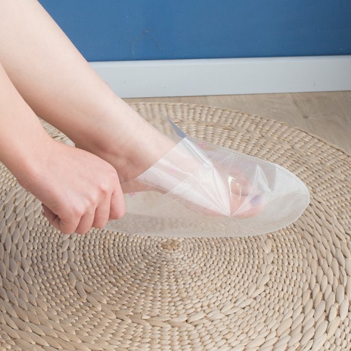 - Włóż stopę do środka i zawiń woreczek tak, aby nie spadał ze stopy. Możesz użyć do tego skarpetki.