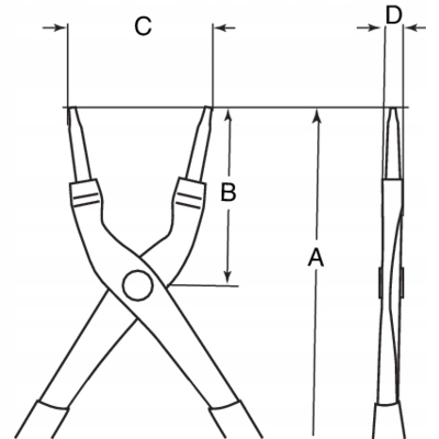 - Szczypce bez sprężyny powrotnej do zewnętrznych pierścieni osadczych