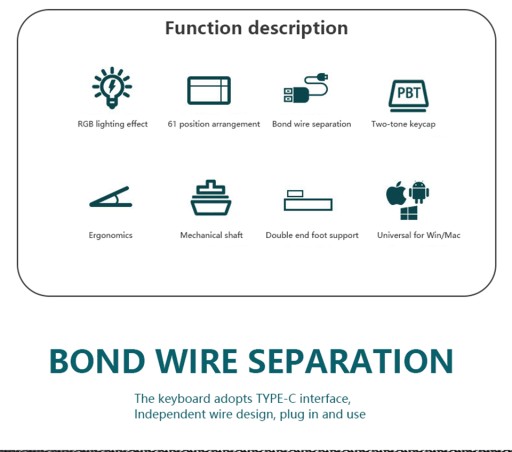 61-klawiszowa klawiatura mechaniczna separacji linii klawiszy RGB