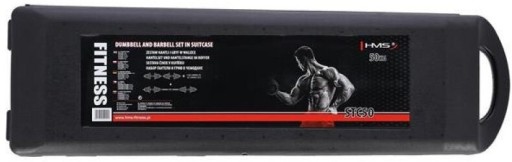Już na pierwszy rzut oka widać, że zestaw hantli HMS STC50 jest bardzo rozbudowany. W jego skład wchodzą dwa krótkie gryfy, jeden długi gryf skręcany, aż 6 różnych zacisków i 20 talerzy. Wszystkie te elementy zamknięte są w specjalnej, wygodnej walizce, która jest zaprojektowana specjalnie do ich przenoszenia. Ze względu na duży ciężar "ładunku" walizkę osadzono na kółkach, które znacznie upraszczają proces jej przewożenia. Do produktu dołączono także instrukcję obsługi oraz kartę gwarancyjną.