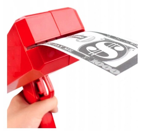 Pistolet na pieniądze, który może zasilić do ponad 100 sztuk banknotów dolarowych i wysyłać je w powietrze.