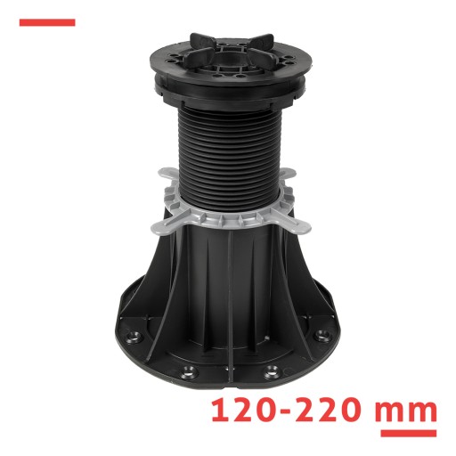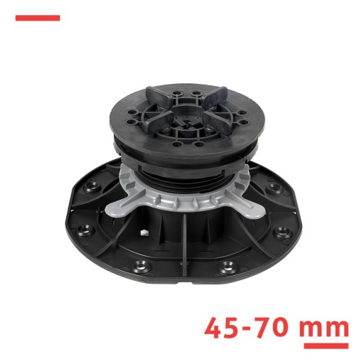 Głowica samopoziomująca pozwala na szybsze poziomowanie tarasu oraz stabilne podparcie całej jego powierzchni.