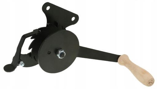 Kołowrotek montowany od środka grilla (rusztu), dzięki czemu linka lub łańcuch równo się nawija.