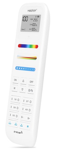 Wielostrefowy pilot radiowy LED z serii Mi-Light, to stu strefowy sterownik LED, pozwalający na indywidualną kontrole każdej ze stref przy wykorzystaniu odbiornika radiowego bądź innej oprawy LED wspieranej przez serie MiBOXER. Pilot radiowy idealnie nada się do instalacji w której wykorzystujemy taśmy LED wielokolorowe z możliwością zmiany natężenia jasności oraz temperatury barwowej CCT. Dotychczas trzeba było zdecydować czy instalacja ma być jednokolorowa czy wielokolorowa, przy wykorzystaniu pilota FUT100 nie mamy takiego problemu.