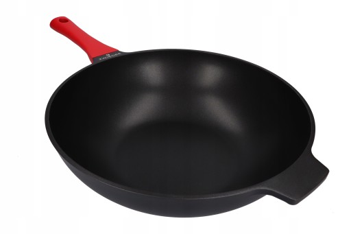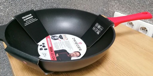 Patelnia wok Zwieger z odlewanego aluminium. Wewnętrzną część naczynia pokrywa innowacyjna, 3-warstwowa, nieprzywierająca powłoka Greblon C3+ non-stick firmy WEILBURGER. Ze względu na swoje wyjątkowe właściwości, zwiększające odporność na zarysowania, powłoka ta stosowana jest w naczyniach najwyższej klasy. Dodatkowo, żaroodporny lakier silikonowy, który pokrywa patelnię na zewnątrz, sprawia, że zachowuje ona swój estetyczny wygląd przez długi czas. Ponadto, patelnia Zwieger doskonale przewodzi i akumuluje ciepło. Naszych patelni można używać na wszystkich rodzajach kuchenek grzewczych, w tym na płytach indukcyjnych. Co więcej, użyty pełny dysk indukcyjny, dzięki pełnemu przewodzeniu magnetycznemu, zapewnia lepsze wykorzystanie energii (do 40 %). Zastosowana nieprzywierająca powłoka pozwala smażyć przy minimalnym lub całkowitym braku zużycia tłuszczu, co niewątpliwie przekłada się na zdrowy tryb życia. Maksymalna temperatura pracy 240 st.C. Rączka została wykonana z materiału PP, który nie przewodzi ciepła, a także posiada specjalną powłokę soft touch, zapewniającą wygodny i pewny chwyt.