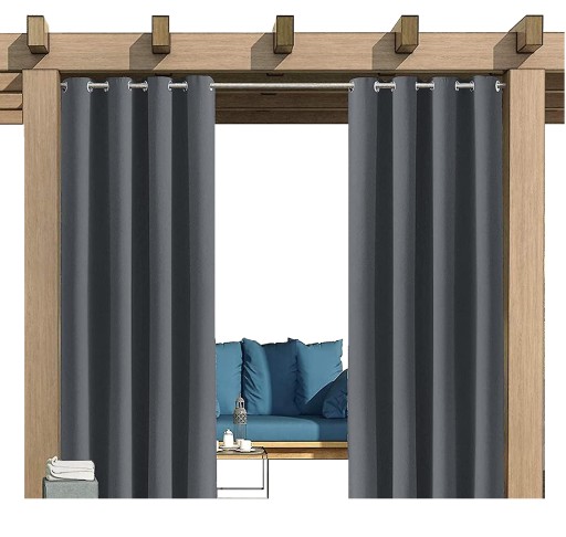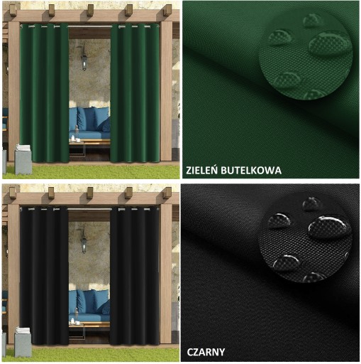 Wodoodporność i ochrona przed słońcem: Nasze zasłony zewnętrzne ze specjalną obróbką materiału są odporne na wodę. Te wodoodporne zasłony są trwałe nawet podczas deszczu, wiatru lub światła słonecznego. Zasłony są doskonałej jakości a tkanina użyta przy produkcji blokuje większość światła słonecznego i promieni UV. Zapobiega zamoczeniu w deszczowe dni lub poparzeniom w słoneczne dni. Im ciemniejszy kolor, tym lepszy efekt cieniowania