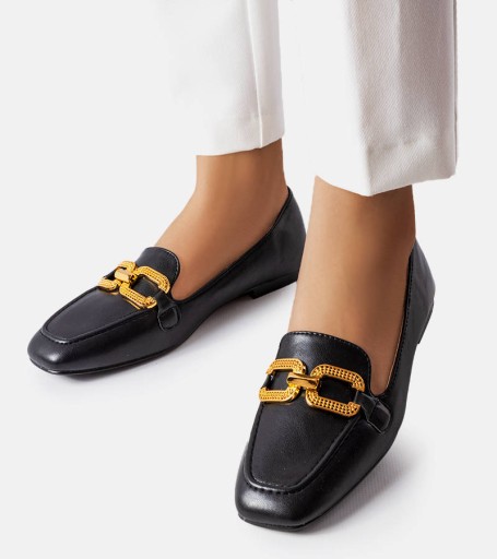 Czarne mokasyny z klamerką Rousseau