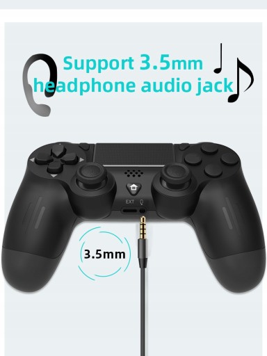 Uchwyt ma stereofoniczne gniazdo audio 3,5 mm, które jest doskonale kompatybilne z zestawami słuchawkowymi do gier. Zasilany przez dołączony kabel do transmisji danych Micro USB, uchwyt można podłączyć do hosta PS4 w celu szybkiego połączenia i ładowania.