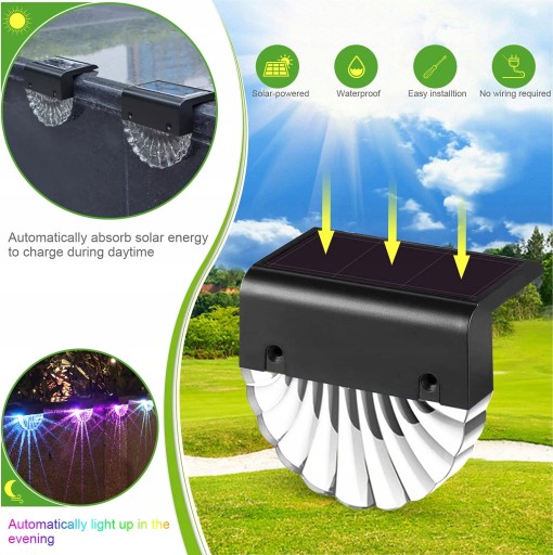 ⭐【Warmweiß/Farbe】 Diese Solarzaunleuchte hat zwei Modi: Warmweiß und Farbbeleuchtung. Der warmweiße Modus eignet sich für die tägliche Beleuchtung, und der Farbmodus ist besonders für Festivals geeignet. Drücken Sie die innere schwarze Taste, um zwischen den beiden Arbeitsmodi zu wechseln.