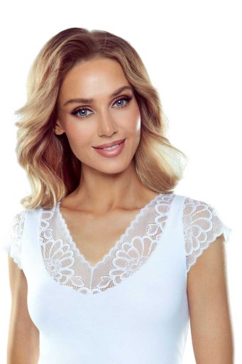 ✅ Dopasowana koszulka dająca wrażenie dwóch warstw: bokserki nałożonej na koronkową koszulkę