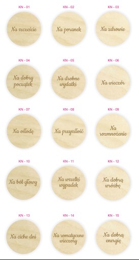 - 6 kółeczek z napisami (do wyboru),