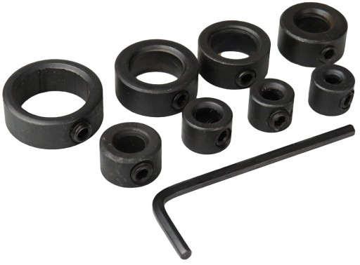 ✅W komplecie znajduje się 8 ograniczników przeznaczonych do wierteł 3, 4, 5, 6, 8, 10, 12 i 16 mm oraz kluczyk do dokręcania śrubki blokującej.