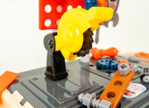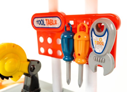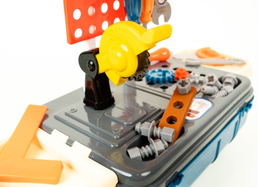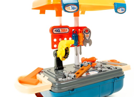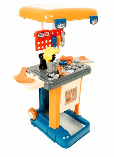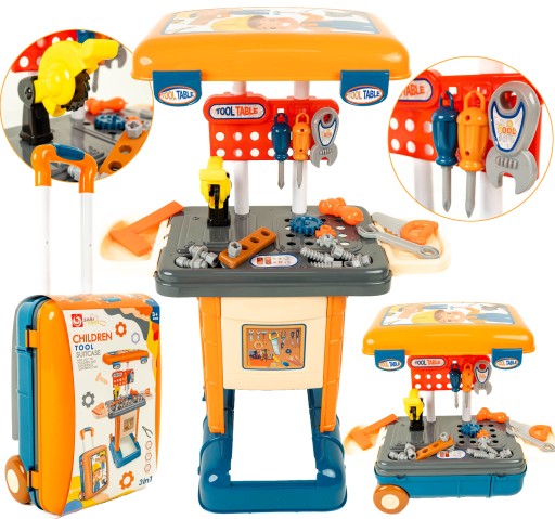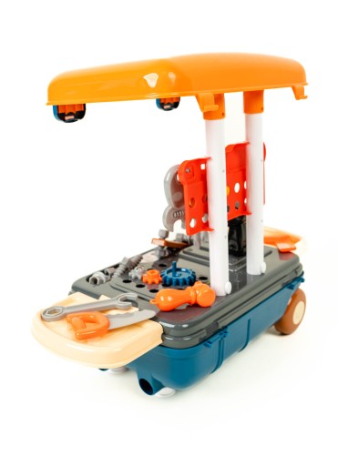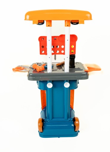Przenośny warsztat ma postać walizki z kółkami i wysuwaną rączką, dzięki której może być swobodnie ciągnięta nawet przez małe dzieci. Kółka kręcą się bez problemu, dzięki czemu walizka może być przemieszczana nawet po nierównym podłożu.