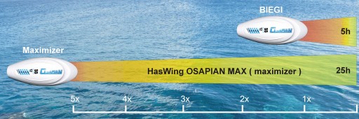 Osapian® to silniki elektryczne do łodzi o uciągu 55 max lbs i napięciu 12 volt. Dużą zaletą Osapiana® jest ekonomiczność, mała waga oraz wymiary, dzięki temu jest łatwy w przenoszeniu oraz transporcie. Za ustawienie prędkości odpowiada posrebrzany przełącznik biegów, który daje możliwość wyboru biegów - 5 do przodu i 3 do tyłu. Uchwyt mocowania do pawęży posiada 10-cio stopniową regulację nachylenia silnika oraz dźwignię, dzięki której można wyciągnąć silnik z wody ruchem jednej ręki w sytuacji natrafienia na podwodną przeszkodę. Teleskopowy i uchylny rumpel daje większy komfort sterowania. Posiada wyświetlacz LED, na którym znajdziemy informację o aktualnym stanie baterii, co jest sporym udogodnieniem. Przeznaczony zarówno na wodę słodką jak i słoną.