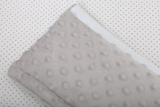 Materiał: jedna strona - tkanina 100% bawełniana, druga strona minky z wytłoczeniami w kształcie kropeczek.