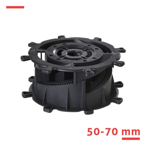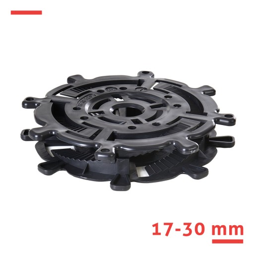 Głowica samopoziomująca pozwala na szybsze poziomowanie tarasu oraz stabilne podparcie całej jego powierzchni.