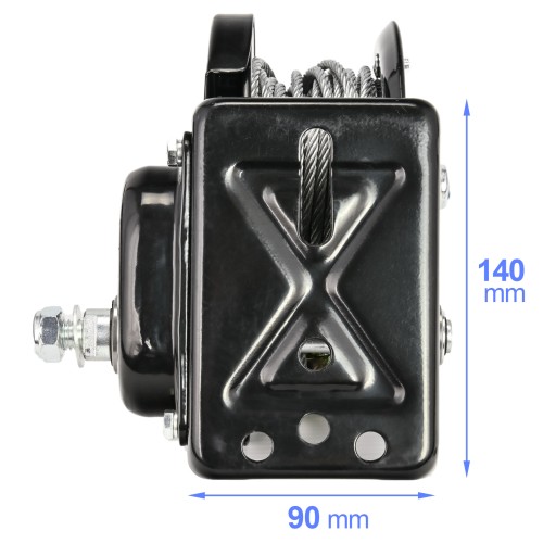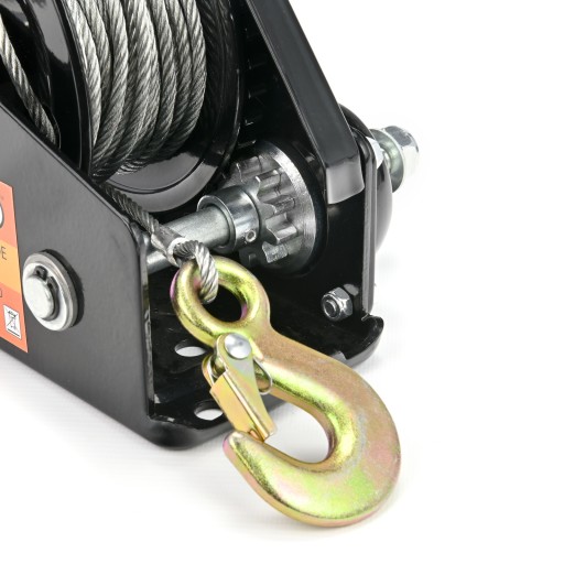 Wciągarka ręczna wykonana z wysokiej jakości materiałów zapewniających jej odpowiednią trwałość i niezawodność. Wyposażona jest w mocny odlewany hak ze sprężyną zwrotną. Sprzęt zapewnia bezpieczne i bezproblemowe wciąganie i opuszczanie przedmiotów.