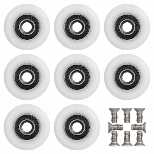 Ten model kółek posiada łożysko kulkowe wykonane ze stali nierdzewnej. Dzięki temu ich żywotność jest znacznie wyższa niż produktów z budżetowym łożyskiem. Zestaw zawiera osiem sztuk kółek oraz osiem śrub montażowych. Tworzywo z którego wykonane jest kółko sprawia że drzwi w kabinie przesuwają się cicho i bardzo płynnie.