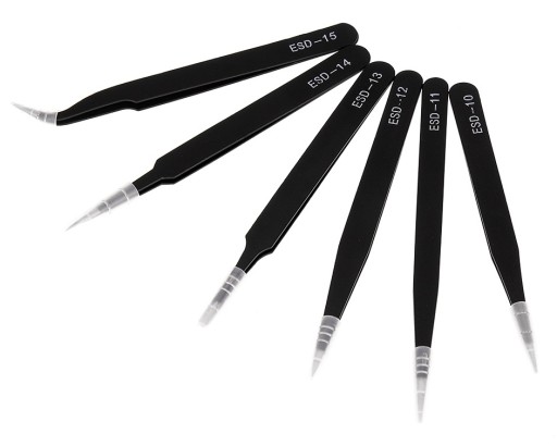 ZESTAW METALOWYCH PĘSET ESD 6SZT PINCETA PĘSETY